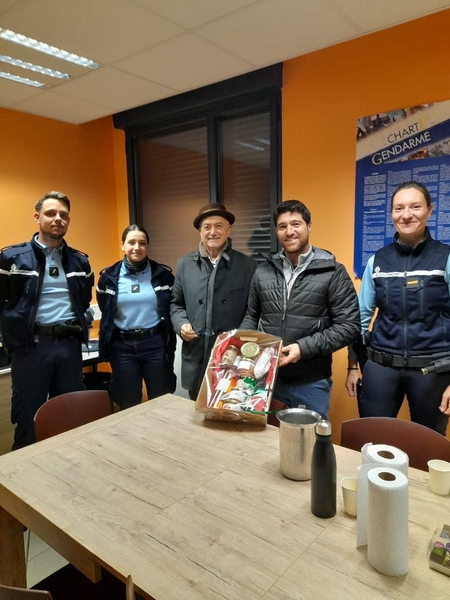 Des paniers garnis ont été remis aux gendarmes, sapeurs-pompiers, équipes du CHRS et agents de la gare, en signe de reconnaissance pour leur mobilisation et leur engagement sans faille, particulièrement en cette période de fêtes.