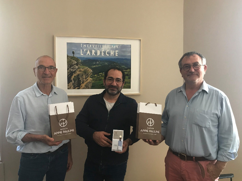 Olivier Peverelli, Maire, et Bernard Noël, adjoint à l'économie et à l'urbanisme, ont rencontré Samy Pascal Bahr, créateur et dirigent de la Maison Anne Pauline dont le siège social est au Teil, au sein de Le Faisceau Sud : pépinière d'entreprises - 07 sur la Zone Rhône Helvie.