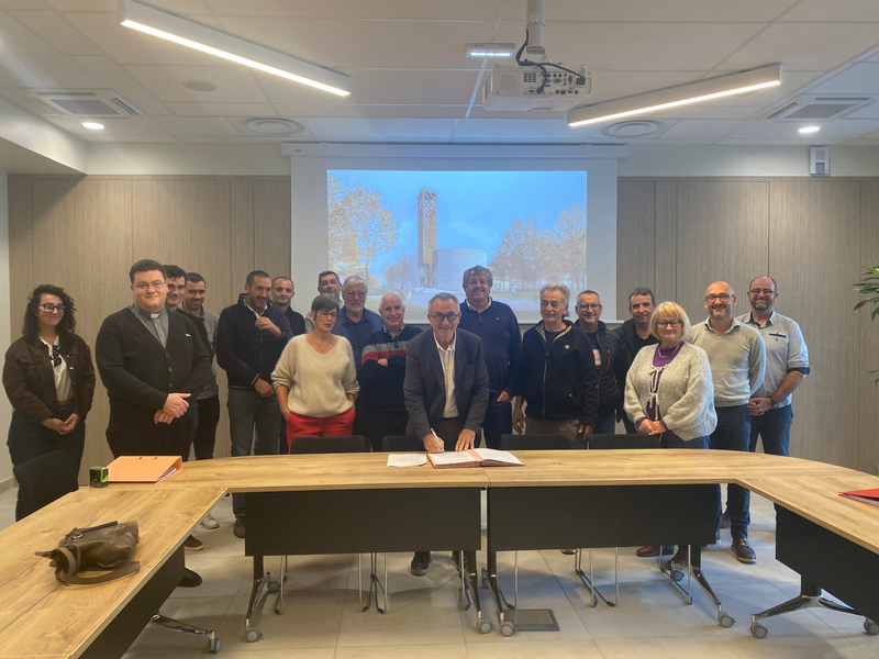 Cette signature marque bien plus qu’un simple lancement de chantier : c’est un symbole fort de la reconstruction du Teil, à quelques jours de la date anniversaire du séisme du 11 novembre 2019. Pour rappel, parmi les nombreux bâtiments touchés, l’église du centre-ville avait été lourdement endommagée, au point de devoir être déconstruite.